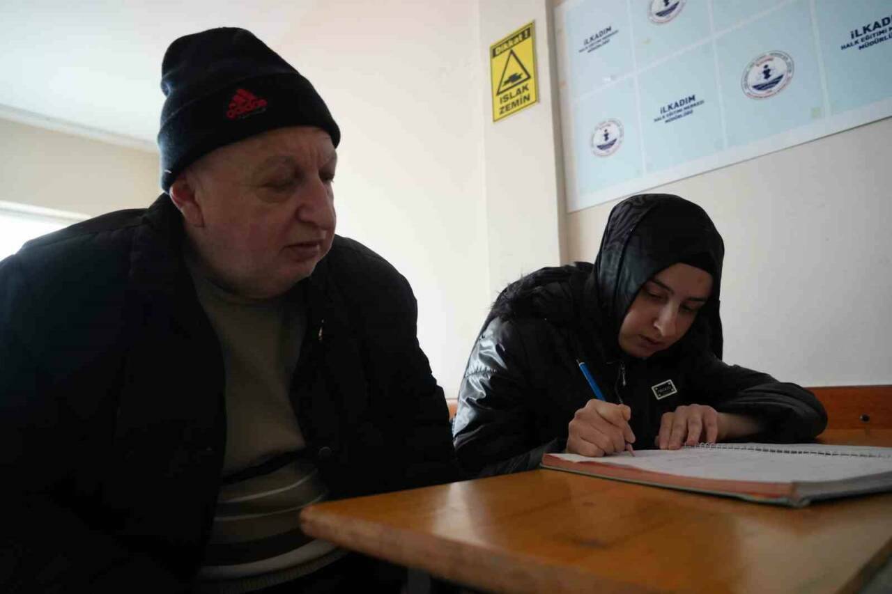 İlkadım Mesleki Eğitim Merkezi’nde açılan kurs sayesinde farklı yaş gruplarından vatandaşlar okuma yazma öğrenme fırsatı bulurken, baba-kızın azmi de görenlere örnek oluyor.