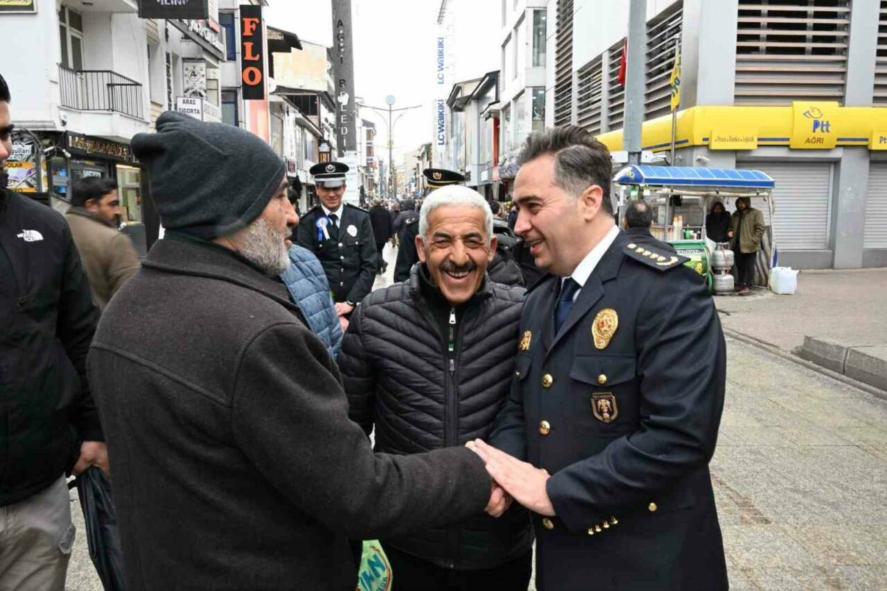 Öte yandan Ağrı Cumhuriyet Başsavcısı Adem Çalış, Adalet Komisyonu Başkanı Abdullah Boyraz ve İl Jandarma Komutanı Tuğgeneral Fatih Cemal Kiper, İl Emniyet Müdürü Göksel Önder’i makamında ziyaret etti. Ziyarette şeref defteri imzalanarak Polis Haftası kutlandı.