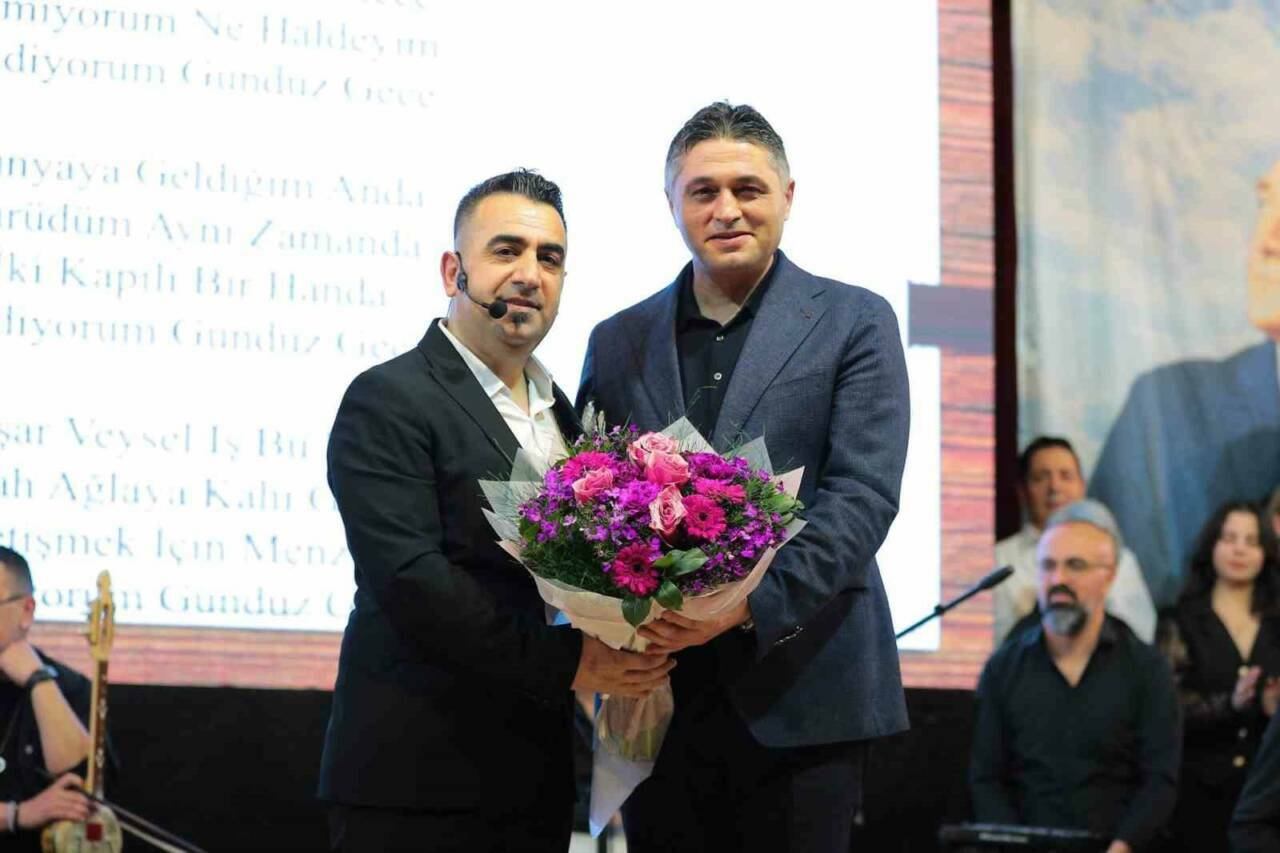 Konser sırasında sahneye davet edilen Aliağa Belediye Başkanı Serkan Acar, Sanat Yönetmeni Ali Hikmet Gökçen’e teşekkür çiçeği takdim etti. Ardından yaptığı konuşmada şu ifadeleri kullandı: “Türk Halk Müziği Koromuz, büyük halk ozanımız, aşıklık geleneğinin en önemli temsilcilerinden Aşık Veysel’in eserlerini seslendirdi. Bu güzel akşamı bizlere yaşatan koromuza, onlara eşlik eden saz sanatçılarımıza, gecenin mimarı Ali Hikmet Gökçen’e ve koromuzu yalnız bırakmayan değerli misafirlerimize çok teşekkür ediyorum. Geçtiğimiz günlerde çocuklarımla yaptığımız bir söyleşide de ifade etmiştim; en büyük hayalim Aliağa’ya gerçek, bize yakışan, büyük bir kültür merkezi kazandırmak.”
