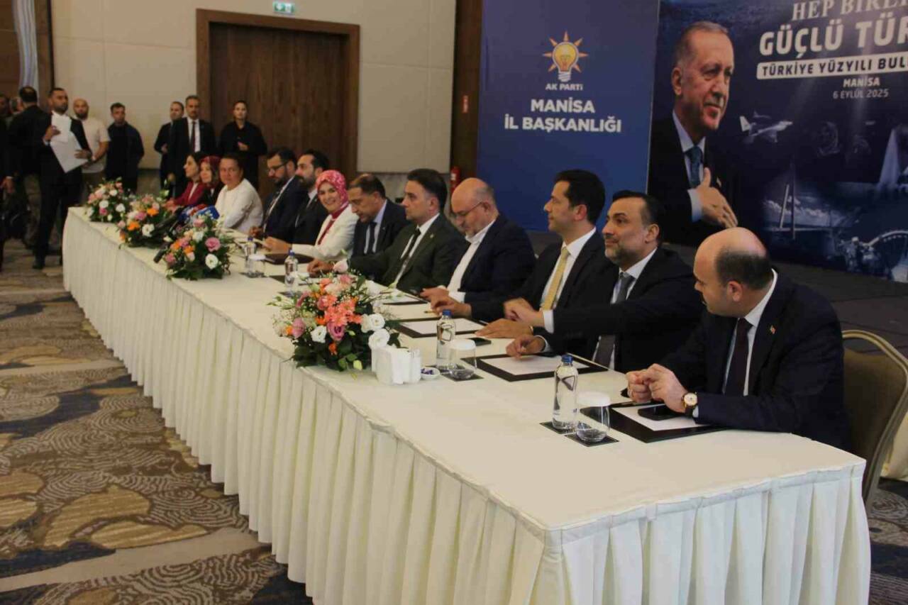 AK Parti Türkiye Yüzyılı Buluşmaları Manisa’da devam etti. Yunusemre ilçesindeki bir otelde gerçekleştirilen buluşmaya Aile ve Sosyal Hizmetler Bakanı Mahinur Özdemir Göktaş, AK Parti Genel Başkan Vekili Yardımcısı Ayşe Nevin Sert, AK Parti MKYK üyesi ve Manisa Milletvekili Mücahit Arınç, AK Parti Manisa Milletvekilleri Murat Baybatur, Tamer Akkal, AK Parti Manisa İl Başkanı Süleyman Turgut, çevre illerin milletvekilleri ve çok sayıda partili katıldı.