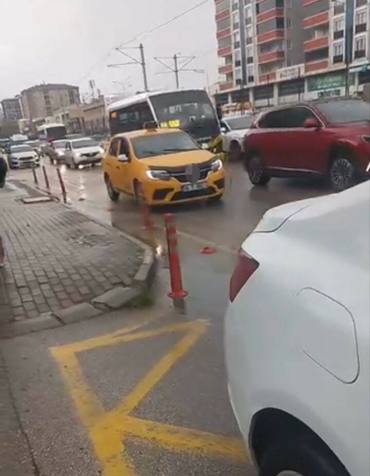 Bursa’da geri geri ilerleyen taksi sürücüsü tehlike saçtı o anlar cep telefonu kamerasıyla kaydedildi.