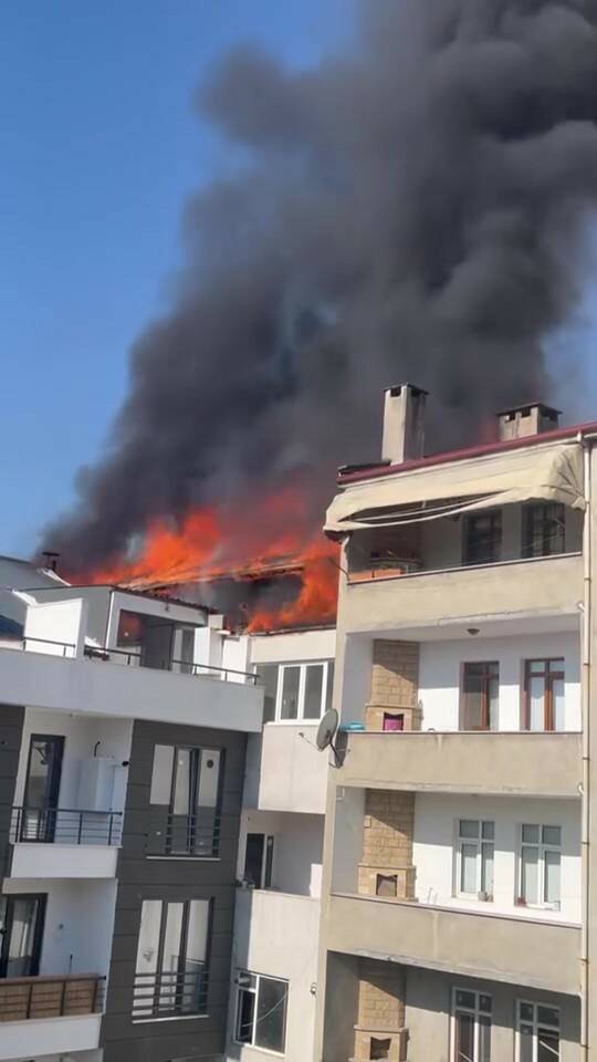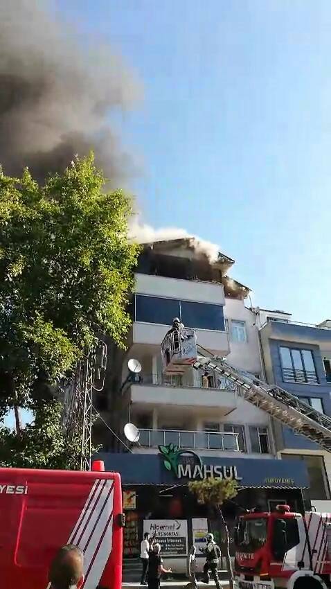 Yangın, Doğan Mahallesi İsmail Özen Caddesi’nde 4 katlı binanın çatı katında meydana geldi. Henüz bilinmeyen nedenle başlayan yangın, kısa sürede büyüdü. Alevler tüm çatı katını sararken, dumanlar ise binayı esir aldı. Durumu fark eden vatandaşlar binadan çıkarken, durum 112 Acil Çağrı Merkezi’ne haber verildi. İhbar üzerine olay yerine çok sayıda itfaiye, sağlık ve polis ekipleri sevk edildi. Kısa sürede olay yerine gelen itfaiye ekipleri, içerde 2 kişinin mahsur kaldığı bilgisi üzerine harekete geçti. Çatı katında mahsur kalan 2 kişi, itfaiye ekipleri tarafından kurtarıldı, bir kişi ayakta tedavi edildi. Alevler uzun uğraşlar neticesinde söndürülürken, binanın altında bulunana lahmacun dükkanı, bacadan inen katranlaşmış kurumla doldu.