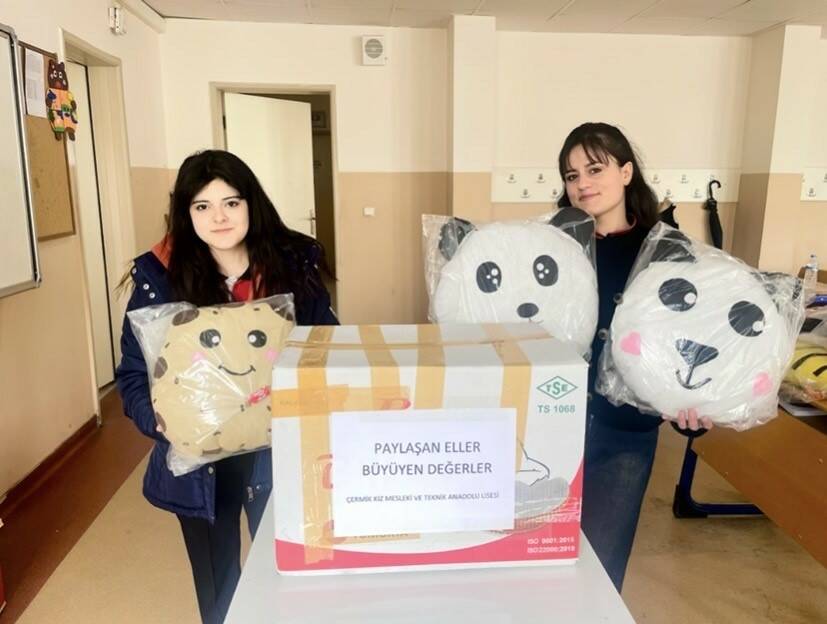 Çocuk Gelişimi ve Eğitimi bölümü 11/A sınıfı öğrencilerinin el emeği göz nuru olarak ürettikleri dolgu oyuncaklar, Kayseri’deki öğrenci kardeşlerine gönderildi. 11/A sınıfı öğrencilerinden Elif Öztürk, ’Paylaşan Eller, Büyüyen Değerler’ kapsamında gönülleri inşa ettiklerini söyledi. Öztürk, “Bugün sadece paketleri kolilemiyoruz; aslında şehirler arasında gönül köprüsünü inşa ediyoruz. Gönderdiğimiz her bir ürünün, gittiği yerde, bir umuda ve yeni bir arkadaşlığa dönüşeceğini biliyoruz. Paylaşmak sadece bir şey vermek değil. Birbirimizin hayatına dokunmaktır. Bu köprünün her bir tuğlasında emeği olanlara teşekkür ederim. Yolumuz sevgi yükümüz kardeşlik olsun. Hediyelerimizi iyi günlerde kullanmanız dileğiyle” dedi.