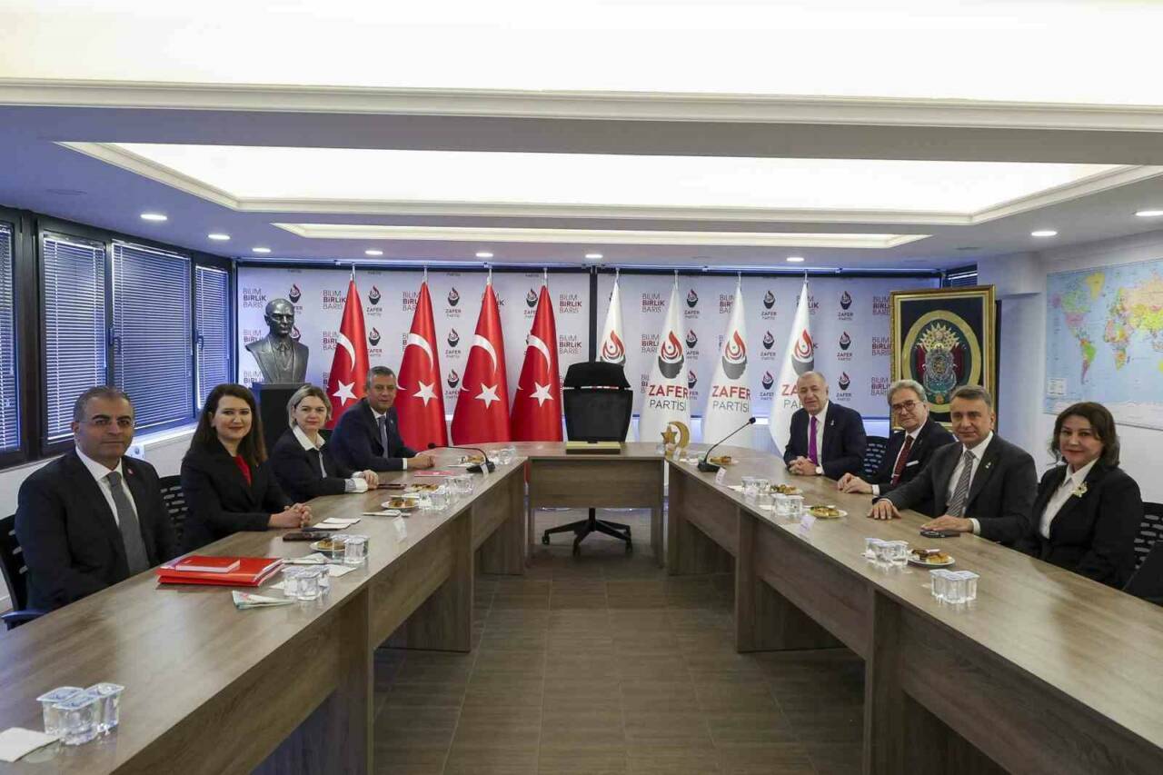 CHP Genel Başkanı Özgür Özel, Zafer Partisi Genel Başkanı Ümit Özdağ’ı Zafer Partisi Genel Merkezi’nde ziyaret etti. Cumhuriyet Halk Partisi Genel Başkanı Özel, görüşmenin ardından yaptığı açıklamada, “Sayın Genel Başkan’ı (Özdağ) biz pek çok kez Silivri Cezaevi’nde ziyaret etmek durumunda kaldık. Hiç İstanbul ile ilgisi olmayan, başka şehirlerde olduğu iddia edilen, sonra da zaten öyle bir suçun asla olmadığı açıkça ortada olan bir durumda sadece Sayın Ümit Özdağ’ı susturabilmek, onun siyasetteki etkinliğini ortadan kaldırabilmek, Zafer Partisi’ni durdurmak ve yıldırmak için kendisini şu anda Adalet Bakanı olan İstanbul Cumhuriyet Başsavcısı Antalya’da, Kayseri’de, Ankara’da olan ve kendince suç olduğunu iddia ettiği şeylerden dolayı alıp özgürlüğünden etmişti. Şimdi burada Zafer Partisi’nin çok kıymetli kadrolarıyla birlikte Sayın Genel Başkan’la özgürlükte siyaseti konuşabilmenin önemini vurguluyorum. İçinde bulunduğumuz bu dönemde Erdoğan’ın siyasi rakiplerini siyasi amaçlarla nasıl cezalandırdığının da altını çizmek istiyorum. İşte tam bu sebepten dolayıdır ki Ekrem İmamoğlu; Erdoğan’ı ve onun gösterdiği adayları bugüne kadar üç kez üst üste mağlup etmiş ve Erdoğan’a hiç yenilmemiş Ekrem İmamoğlu, şu an cezaevindedir. 20 belediye başkanımız ve çok sayıda siyaset arkadaşımız ve bürokratımızla birlikte cezaevindedir. Cumhuriyet Halk Partisi’ne karşı son seçimlerin, yerel seçimlerin toplumun yüzde 65’ine belediyecilik hizmeti yapmak üzere görevlendirilmiş, son yerel seçimlerde 47 yıl sonra birinci parti olmuş, Adalet ve Kalkınma Partisi’ni girdiği bir seçimde mağlup etmiş Cumhuriyet Halk Partisi’ne de çoklu saldırılar işte bu yüzdendir. O yüzden de bizim pazarımız, tatilimiz yoktur. Biz sandık gelene kadar ve bu millet huzur bulana kadar durmayacağız, durmadan çalışacağız” ifadelerini kullandı.