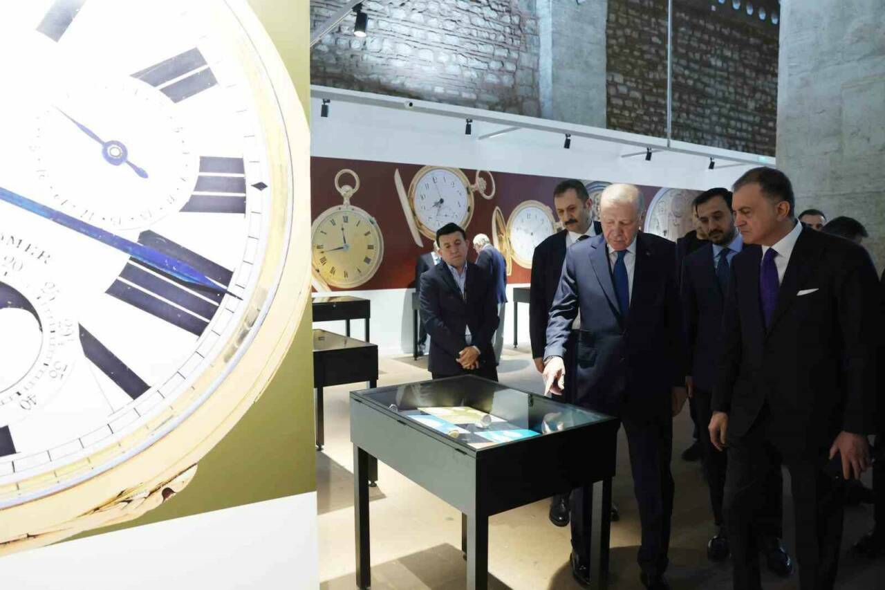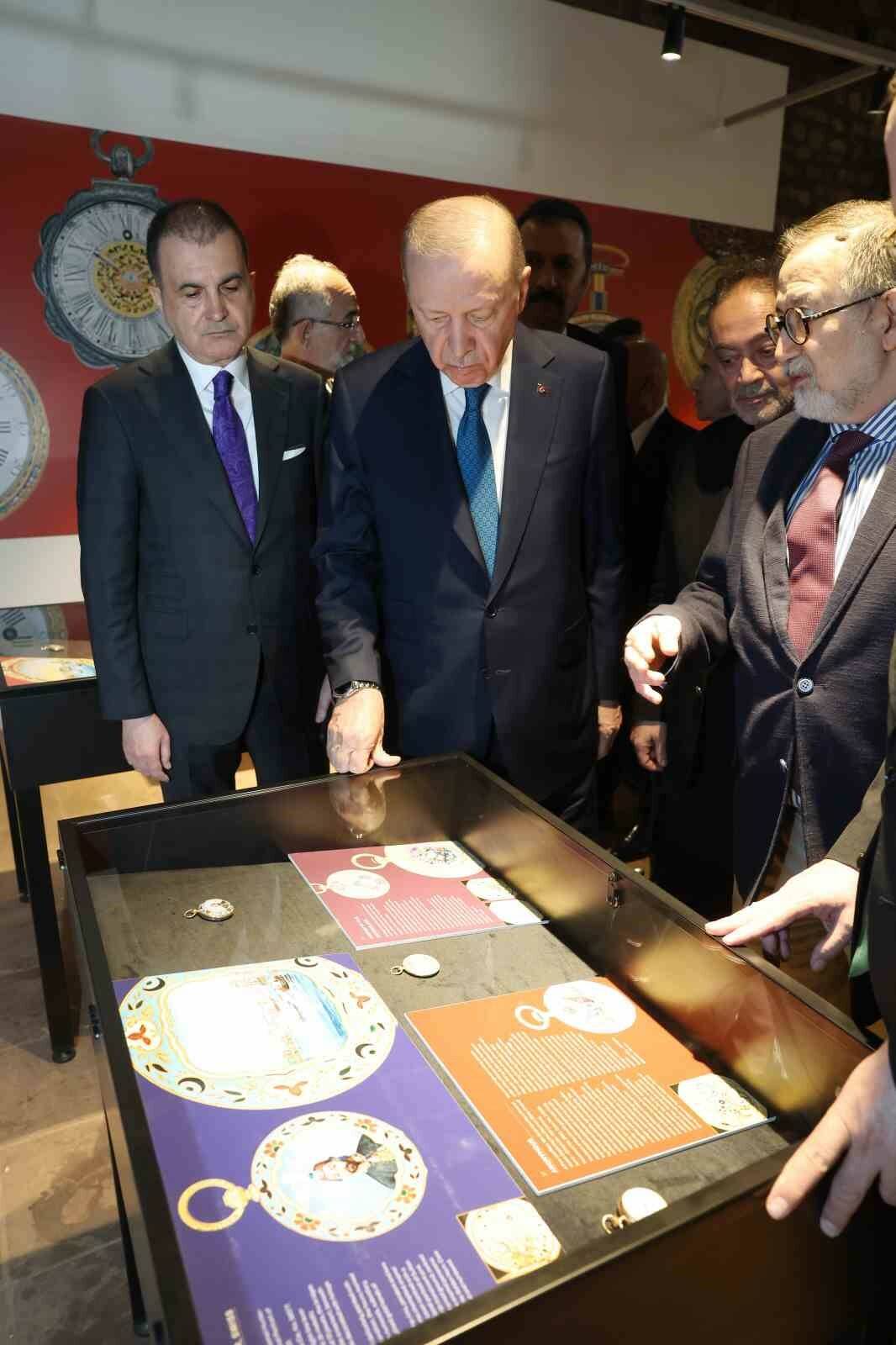 Cumhurbaşkanı Recep Tayyip Erdoğan, 16. yüzyıldan 20. yüzyılın başlarına uzanan nadir cep saatlerinin yer aldığı “Muhteşem Cep Saatleri Koleksiyonu” sergisini ziyaret etti, saatler hakkında bilgi aldı.