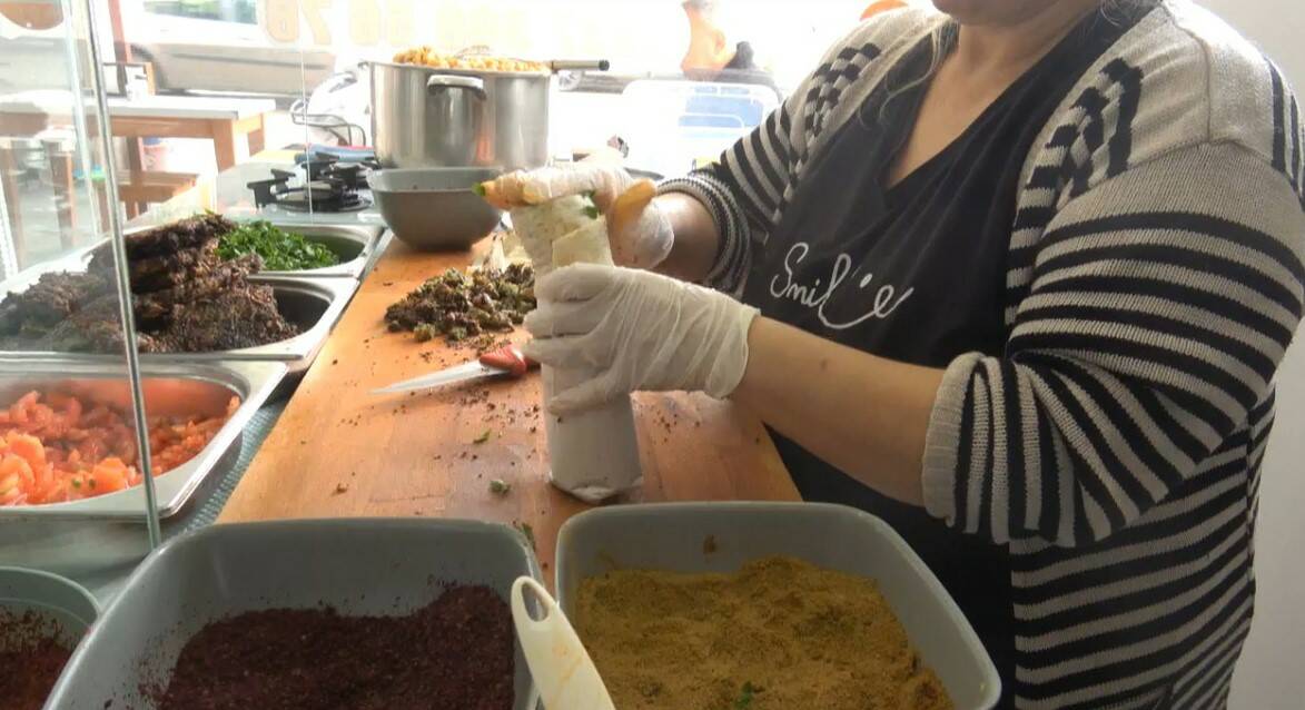 Hatay’da memleketinin lezzeti olan nohut dürümü vatandaşlara 90 TL’lik fiyatla sunan ve İskenderun ilçesinde ‘Nohut dürümcü Kadriye abla’ Kadriye Uzun, 10 yıldır sürdürdüğü mesleğinde el lezzetiyle vatandaşların vazgeçilmezleri arasında.