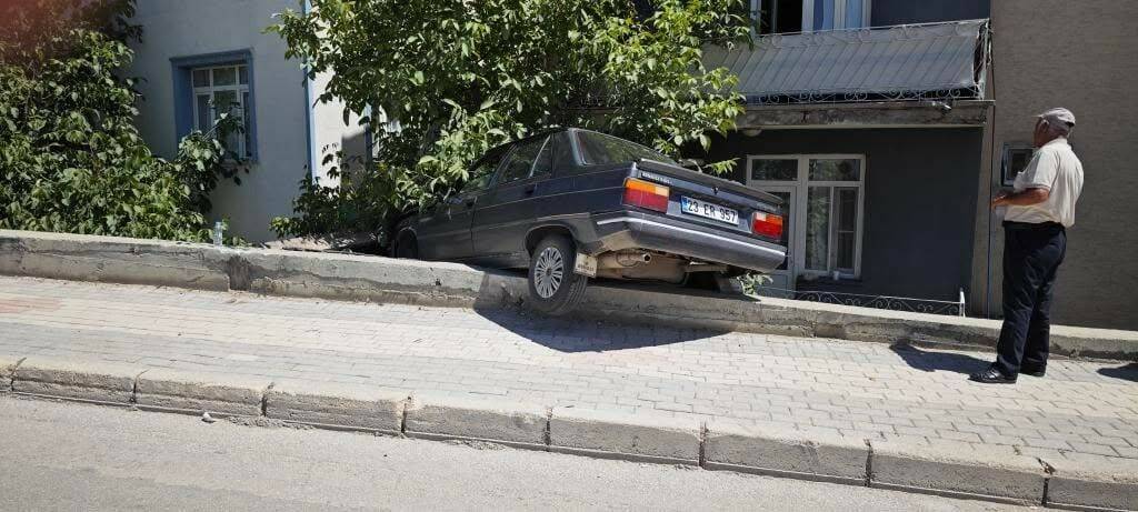 Kaza, Fevzi Çakmak Mahallesi’nde meydana geldi. Edinilen bilgiye göre, seyir halindeyken tekeri patlayan 23 ER 957 plakalı otomobil, virajı alamayarak kaldırıma çıktık. Hızın alamayan otomobil, istinat duvarı ile bina arasında bulunan kömürlüğün üzerine çıkarak durabildi. Araç aşağı düşmekten son anda kurtulurken kazada yaralanan olmadı.