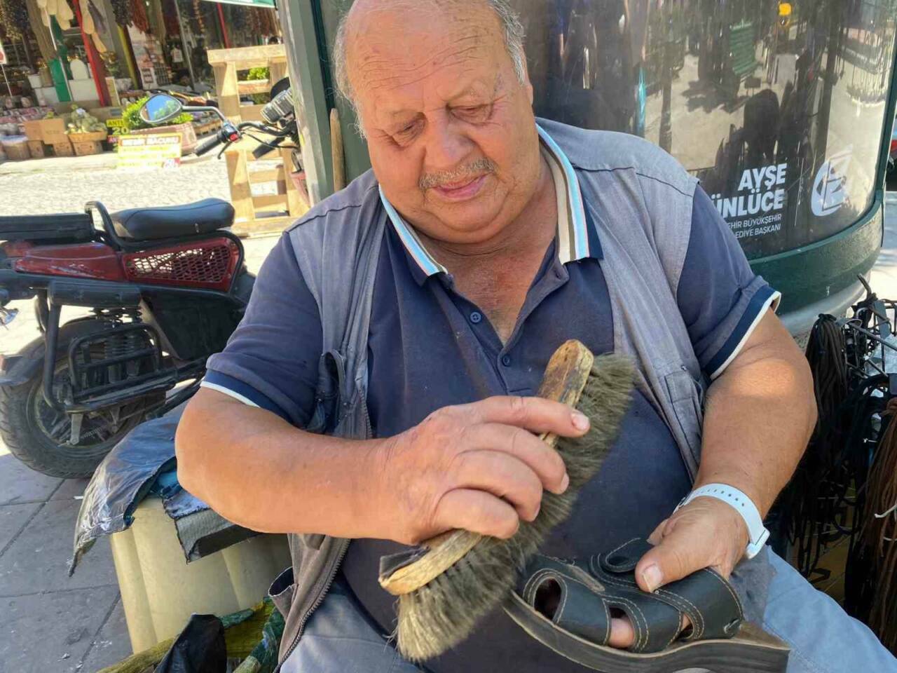 Eskişehir’de uzun yıllar belediyede şoförlük yapan 75 yaşındaki Selahattin İnce, emekli olduktan sonra çalışmaya devam edip çocukluk mesleği olan ayakkabı boyacılığına başladı.