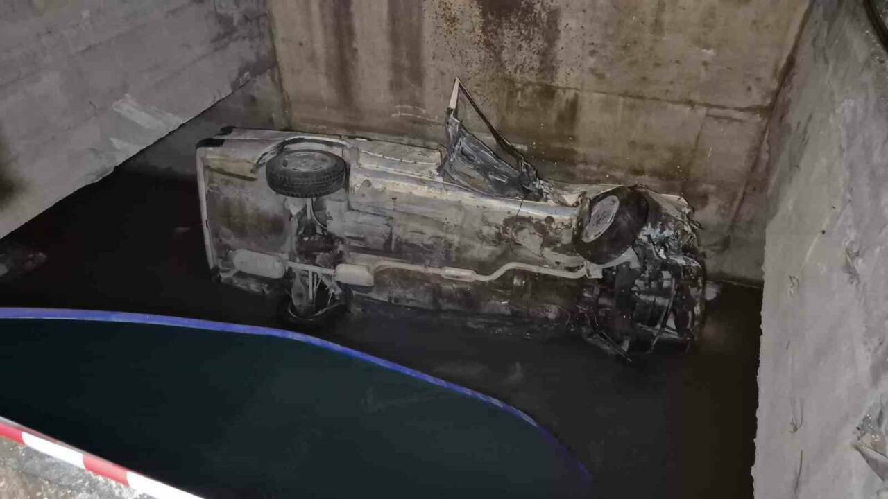 Eskişehir’de kontrolden çıkan otomobilin yaklaşık 5 metre yükseklikteki sulama kanalına