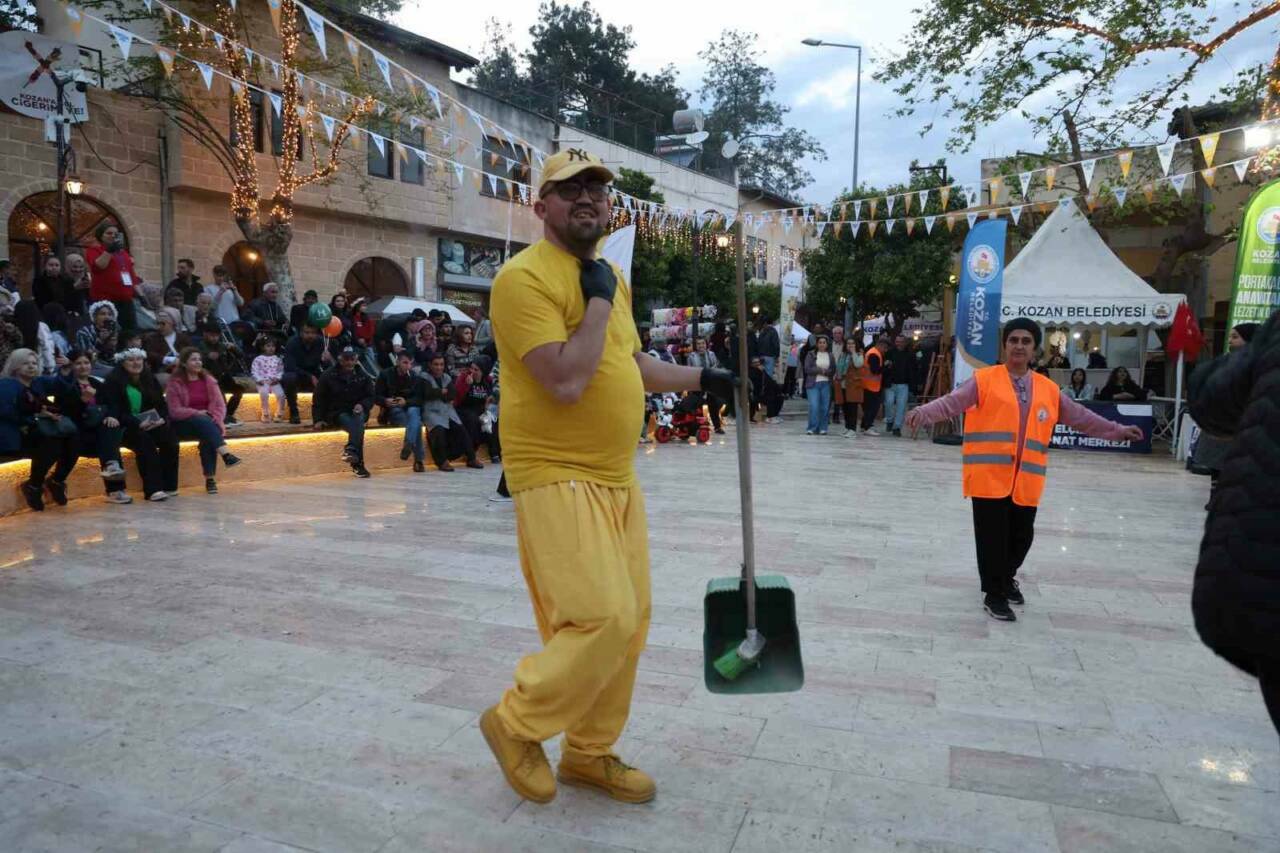 Kozan’da tarihi Yukarı Çarşı’da gerçekleştirilen ve binlerce ziyaretçinin akın ettiği festivalde, çevre temizliğinden sorumlu ekiplerin müziğe kendilerini kaptırdığı anlar renkli görüntüler oluşturdu. Sahnede programın olmadığı bir anda ellerindeki temizlik malzemeleriyle sahneye çıkan işçiler, kısa süreli eğlencenin ardından görevlerine kaldıkları yerden devam etti. Sahnede oynarken bir yandan da yerdeki izmaritleri toplamayı sürdüren işçilerin o anları kameralara yansırken, ortaya çıkan görüntüler izleyenlerden büyük beğeni topladı. Çalışma azmi ve neşeleriyle dikkat çeken temizlik görevlileri, vatandaşlardan takdir aldı.