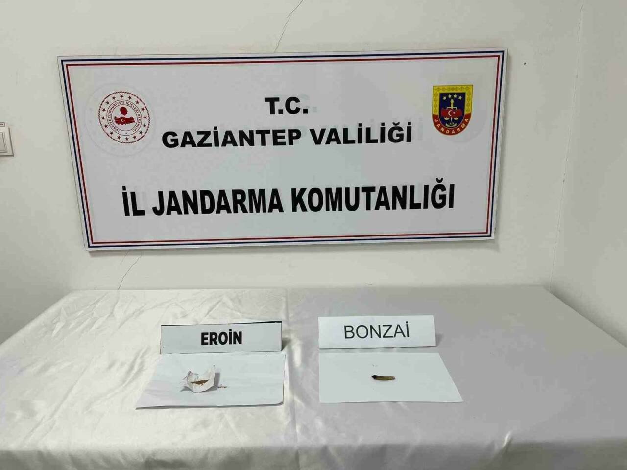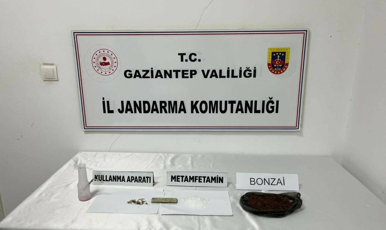 Gaziantep’te İl Jandarma Komutanlığı ve Cumhuriyet Başsavcılığı koordinesinde, uyuşturucu ve uyarıcı madde ile mücadeleye yönelik çalışma yapıldı. İslahiye ilçesinde yapılan çalışmalar çerçevesinde, şüphe üzerine durdurulan iki ayrı araçta ve M.E., M.K., A.Ö. ve D.M. isimli şahısların üzerlerinde arama yapıldı. Aramalar sonucunda 68 gram metanfetamin, 56 gram sentetik uyuşturucu (Bonzai), 100 miligram uyuşturucu ve uyarıcı sıvı, 2 adet uyuşturucu kullanma aparatı, 1 adet bonzai sarma kâğıdı çarşaf, 1 gram eroin maddesi ve 1 adet bir kısmı içilmiş halde sentetik uyuşturucu ele geçirildi.