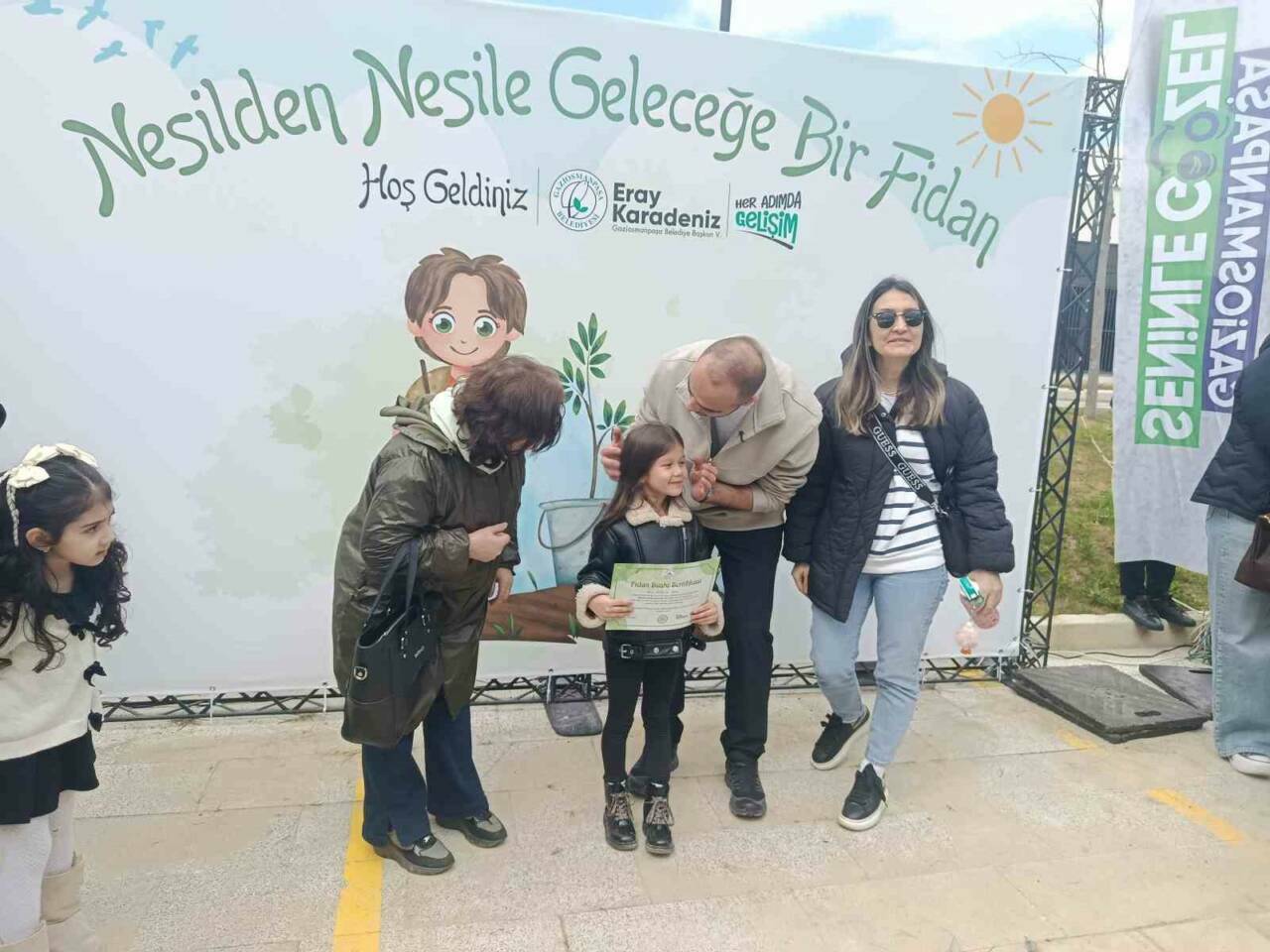 Gaziosmanpaşa Belediyesi tarafından “Nesilden Nesile Fidan Dikimi Projesi” kapsamında Gaziosmanpaşa Millet Bahçesi’nde anlamlı bir etkinlik düzenlendi. Etkinliğe Gaziosmanpaşa Belediye Başkanı Eray Karadeniz, çocuklar ve aileleri katıldı. Programda çocuklar, üstlerinde kendi isimleri yazılı olan fidanları dikerek doğaya umut oldu. Gaziosmanpaşa Belediye Başkanı Eray Karadeniz çocuklara yardım ederek, fotoğraf çektirdi. Programın sonunda çocuklara katılımları dolayısıyla sertifika verildi.