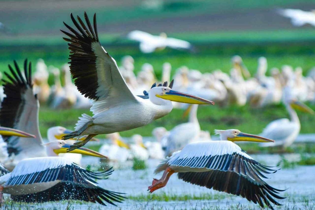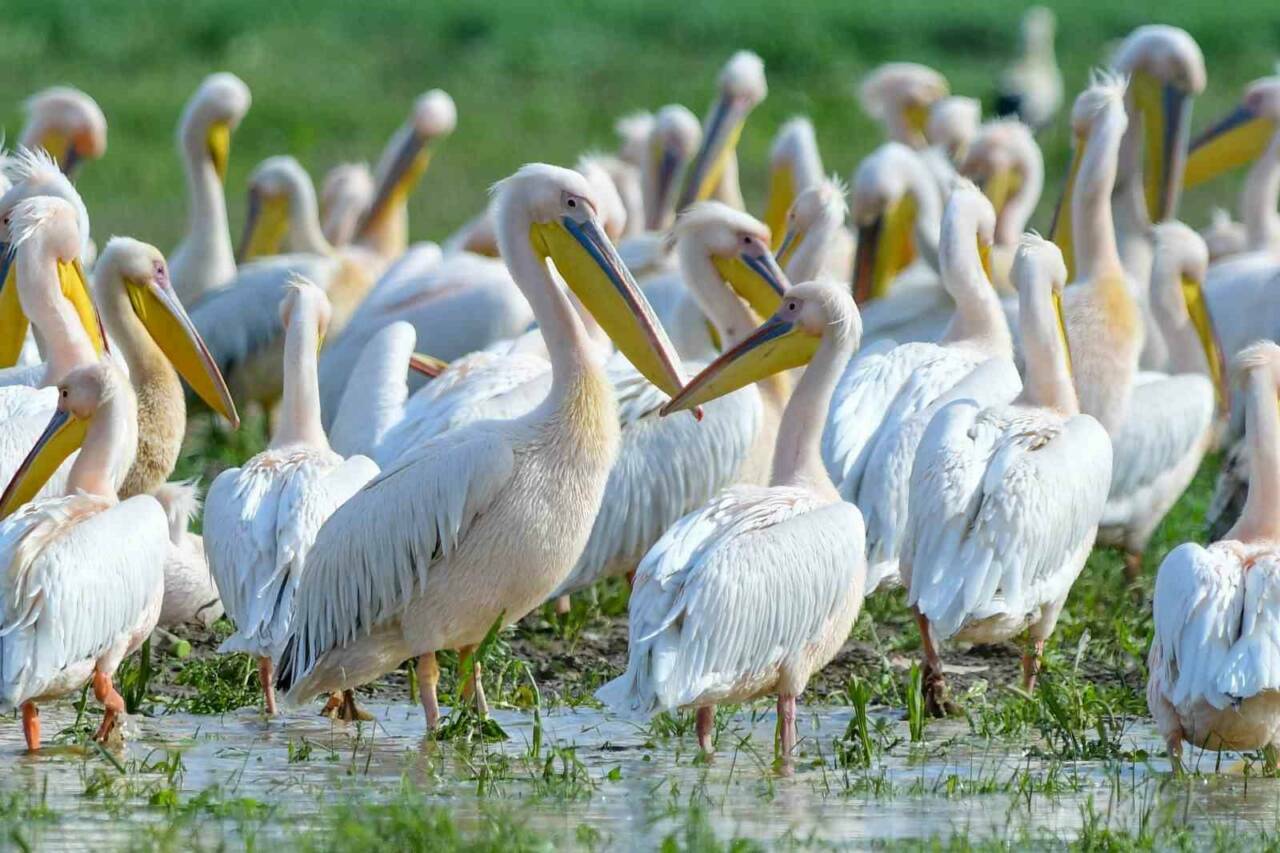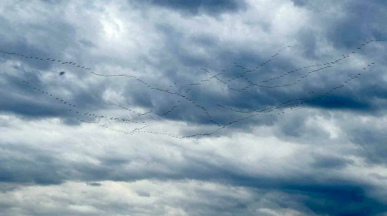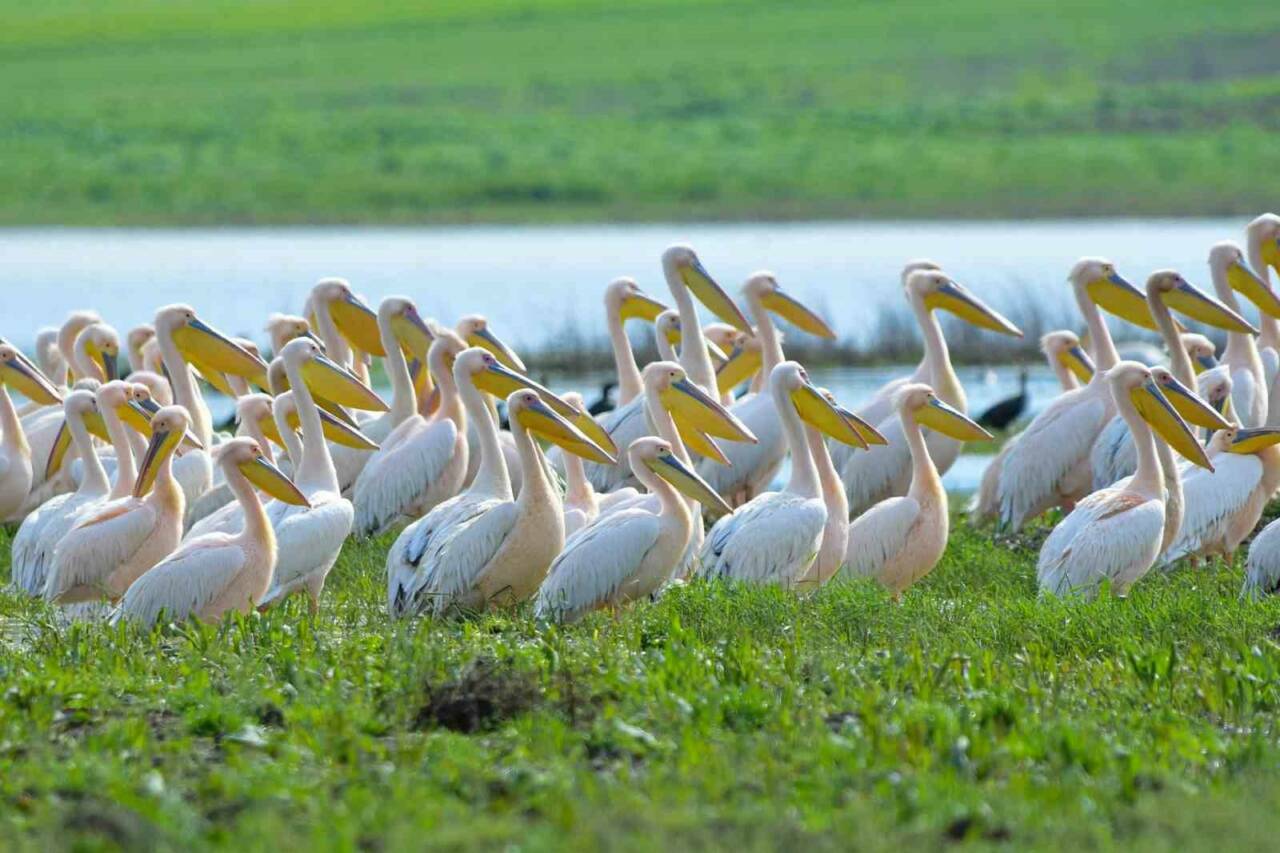 Göç yolundaki pelikan sürüsünün Bursa molası