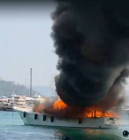 Göcek’te tekne alev alev yandı