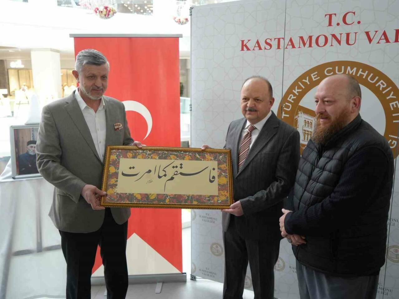 Serginin açılışında konuşan Kastamonu Valisi Meftun Dallı ise, “Ayasofya Camimizdeki büyük Lafzatullah ismini yazan Mustafa İzzet Efendi başta olmak üzere Kastamonu’muzun pek çok hattatı var. Hüsn-i hat sanatına Kastamonu’da hizmet eden pek çok şahsiyet çıkmış, ki her birisi Kastamonu çapında bir vilayete değil, bir ülkeye onur verecek kadar değerli şahsiyetler. Hepsini rahmetle yad edelim, hepsinin mekanları cennet olsun. Tabii özellikle de Emrullah Demirkaya merhum üstadı rahmetle yad edelim. Onun da mekanı cennet olsun, Allah rahmet eylesin. Ben İbrahim Ethem hocama, Mahmut Şahin hocama, Erhan Bektaş hocama ve diğer talebelerimize geldikleri ve bu sergimize bizimle teşrif ettikleri için çok teşekkür ediyorum. Sizlere katılımlarınızdan dolayı teşekkür ediyorum. Sergimizin gençlerimizde hem hat sanatına bir ilgi uyandırması hem de bu güzelliği görüp en azından estetik anlamda buradan bir hüner ve değer kazanmaları, kendilerine bir değer katmalarına vesile olmasını temenni ediyorum” şeklinde konuştu.
