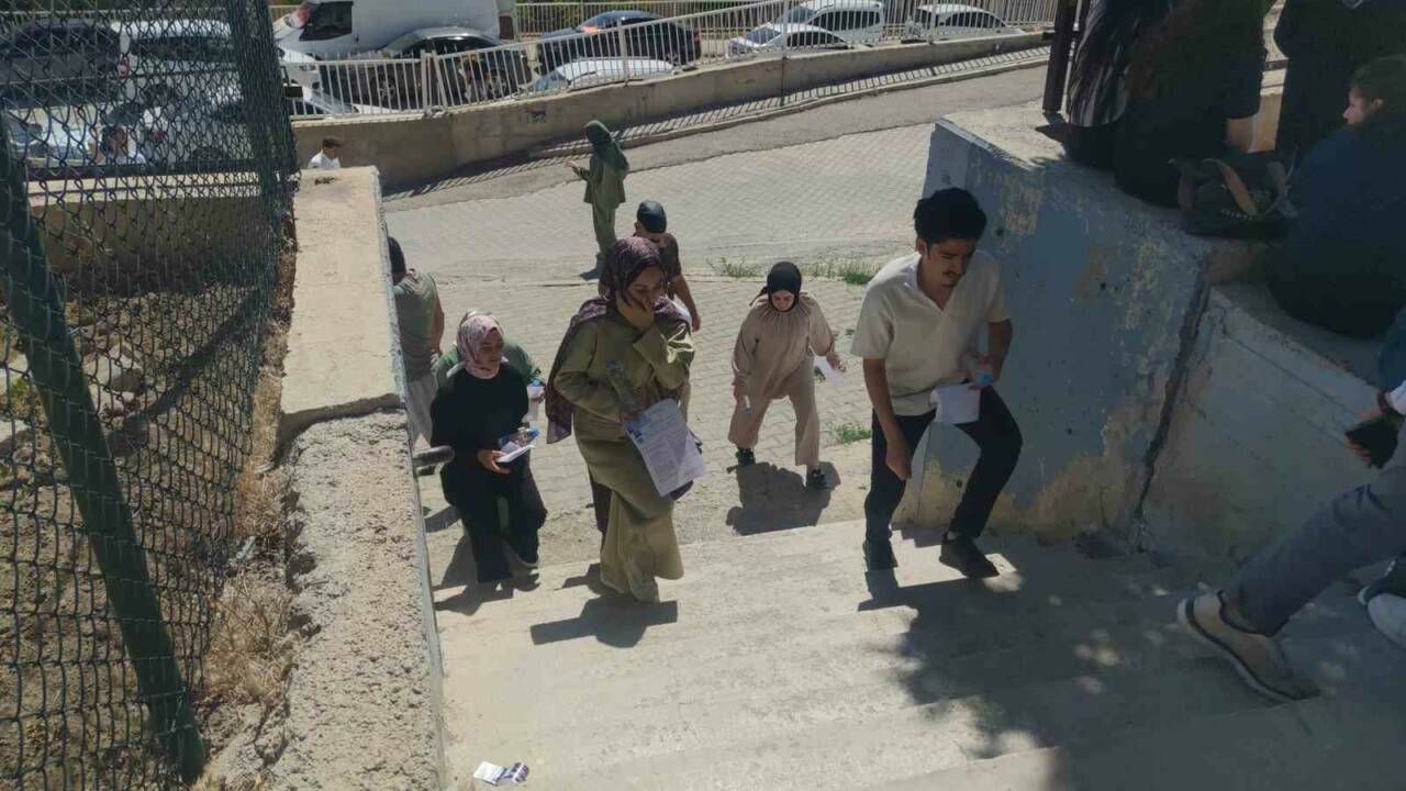 Van’ın Tuşba ilçesinde Turgut Özal Anadolu Lisesi’nde dikkat çeken görüntü, sabah saatlerinde YKS’nin ikinci oturumu olan