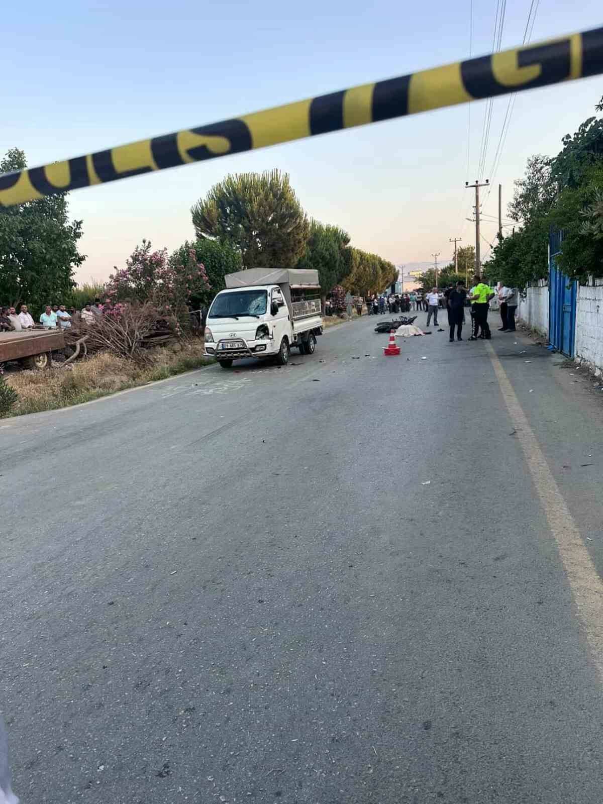 Aydın’ın İncirliova ilçesinde kamyonet ile motosikletin çarpışması sonucu meydana gelen