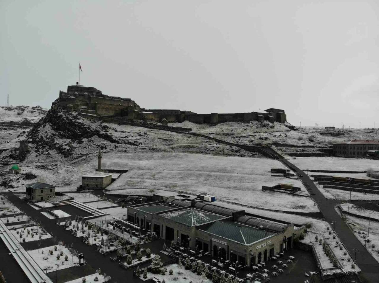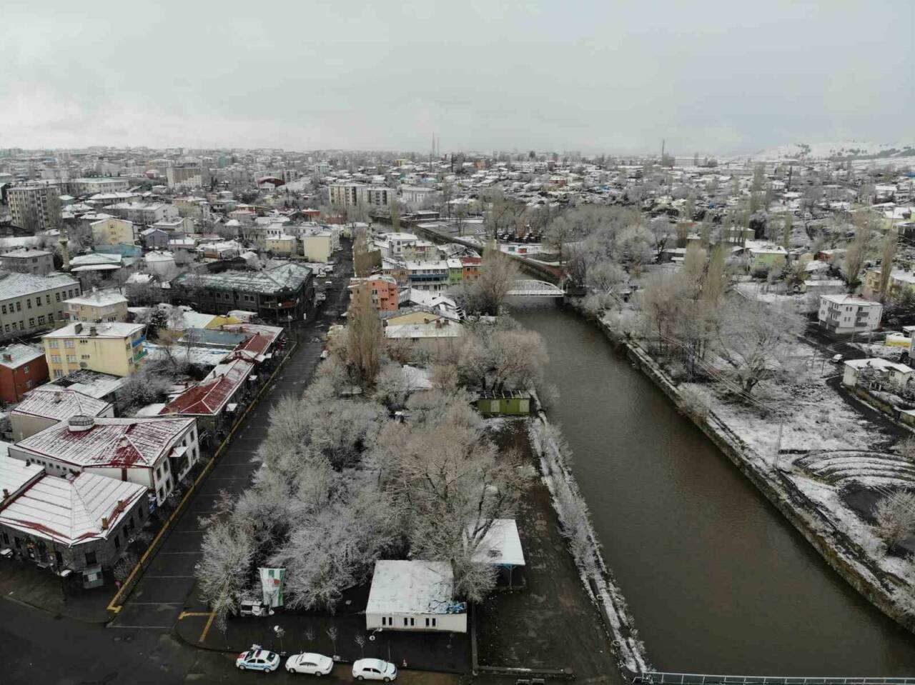 Kars’ta kış etkisini sürdürüyor. Kentte hava sıcaklığının sıfırın altında 7 dereceye düşmesiyle birlikte ağaçlar zemheri soğuklarında olduğu gibi yeniden kırağı tuttu. Ağaçlar kırağıyla kaplandı. Kars Kalesi’nin etekleri yağan kar ile birlikte beyaza büründü.