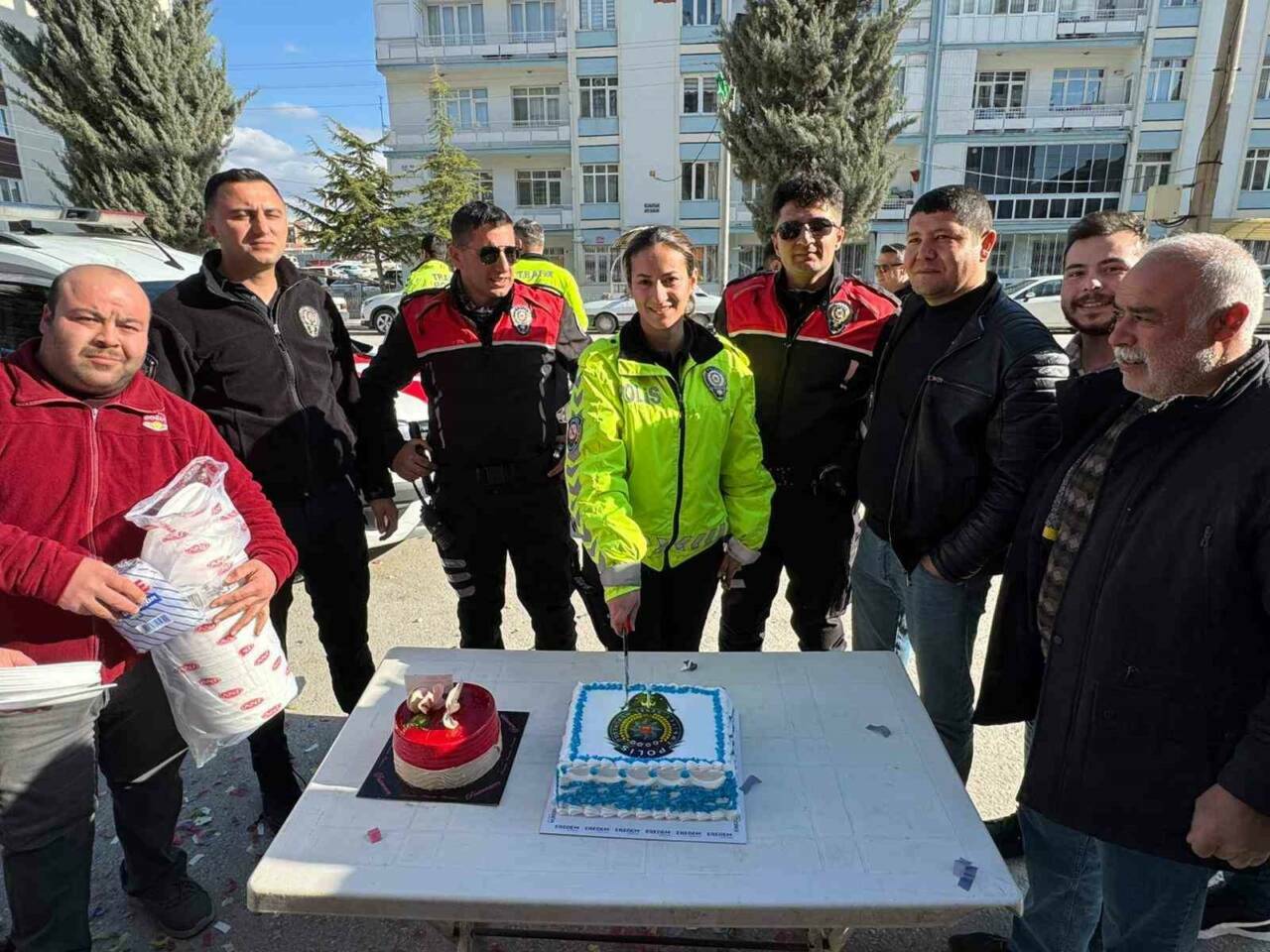 Kavga ihbarına giden polisler pasta ve çiçekle karşılandı