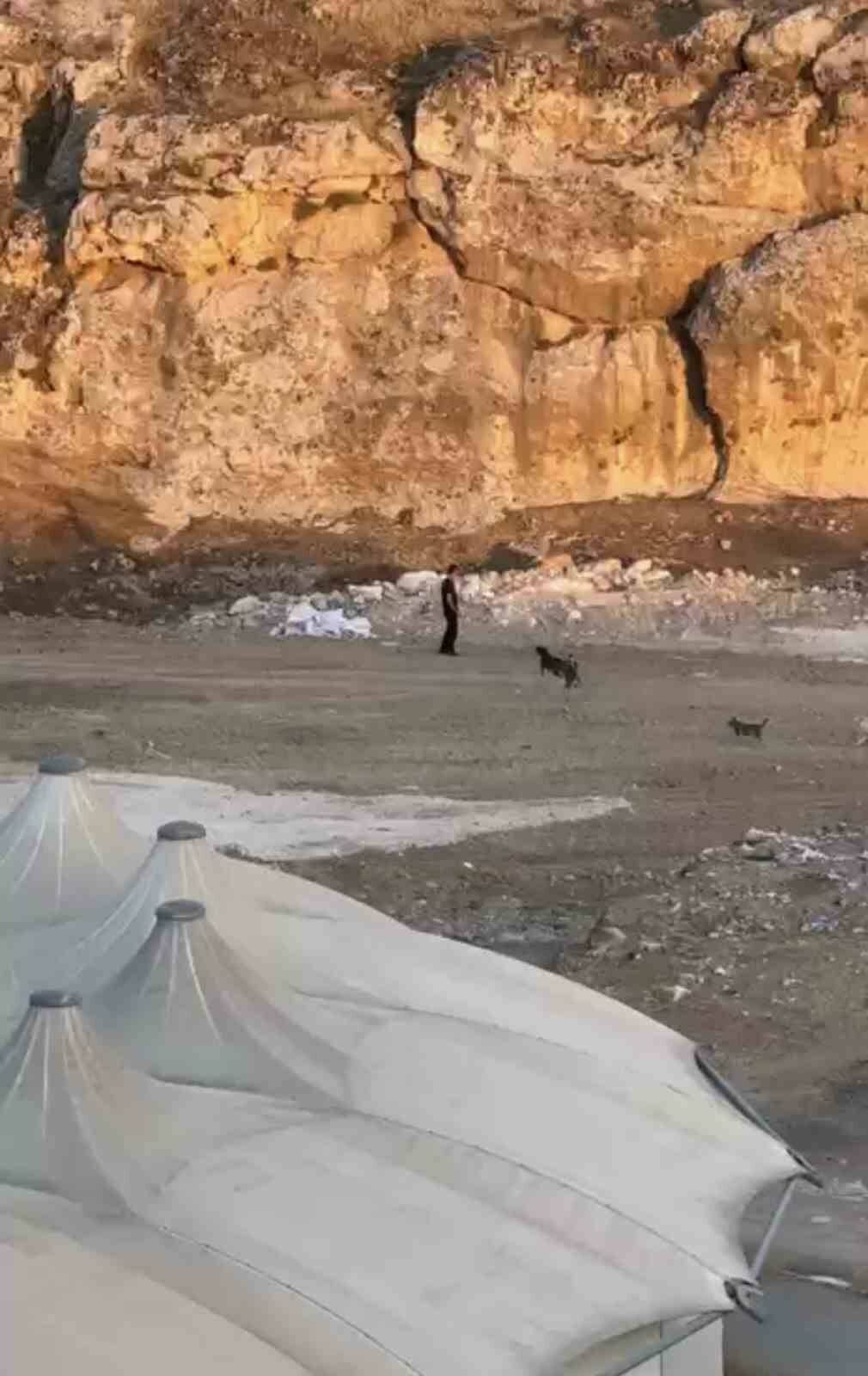 Mardin’in Artuklu ilçesinde bir kişinin kendisine saldırmaya çalışan köpeklere aldırış etmeden yoluna devam etmesi dikkat çekti.