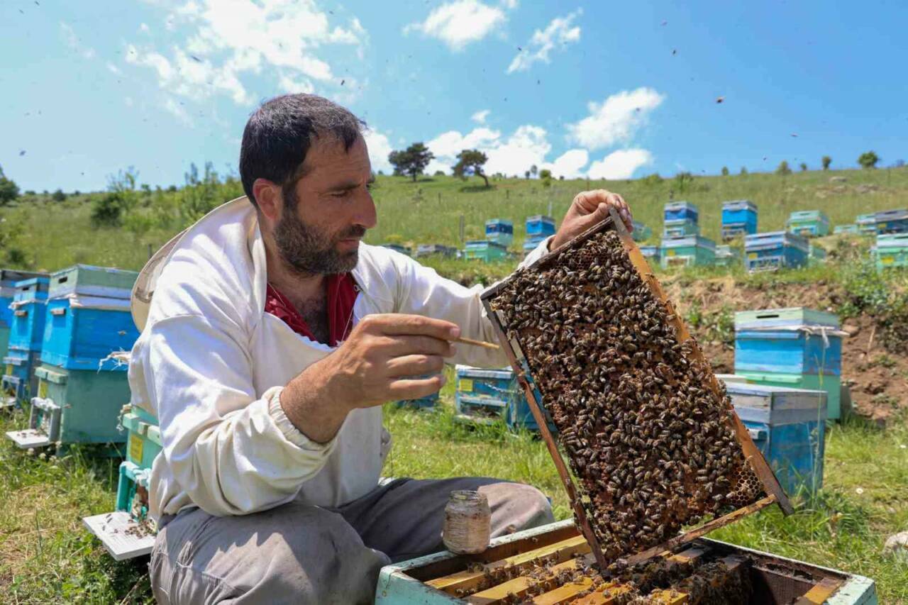 Kraliçe arının tek besin kaynağının arı sütü olduğunu ve bu nedenle de aynı ırktan ve cinsten işçi arılara göre daha uzun yaşadıklarını ifade eden Ekinci, “Bu mevsimlerde arı sütünün hasadını yapıyoruz. Sağlık açısından birçok faydası bulunuyor. Kanser hastalığı gibi önemli birçok hastalığa iyi gelmesiyle bilinen arı sütü, dünyanın en pahalı yiyeceklerinden birisi. Kilogram fiyatı yaklaşık 45 bin lira. 5 yıl öncesine kadar arı sütleri yurtdışından ithal olarak getirtiliyordu ancak son zamanlarda yerli arıcılarımız tarafından da üretilmeye başlandı. Bir günde bir kovandan yaklaşık 2 çay kaşığı kadar arı sütü alabiliyoruz. Arı sütü vitamin ve mineral bakımından oldukça zengin bir besin. Arı sütü kraliçe arının tek besin kaynağı. Bir işçi arının ömrü yaklaşık 40 günken arı sütü ile beslenen kraliçe arının ömrü 3 ila 4 yıl arasında değişebiliyor. Aynı cinsten ve ırktan olan işçi arı 40 gün yaşarken sadece arı sütü ile beslen kraliçe arının ömrü daha uzun oluyor. Kraliçe arının ömrünü uzatan besini insan ömrüne nasıl faydalar sağlar onu tahmin bile edemeyiz” dedi.