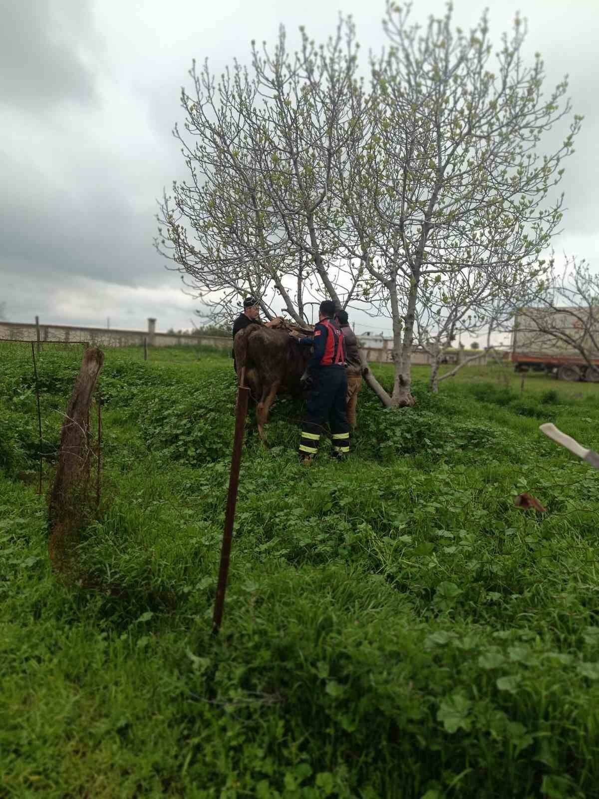 Mardin’in Artuklu ilçesinde, kuyuya düşen inek, itfaiye ekiplerince kurtarıldı.
