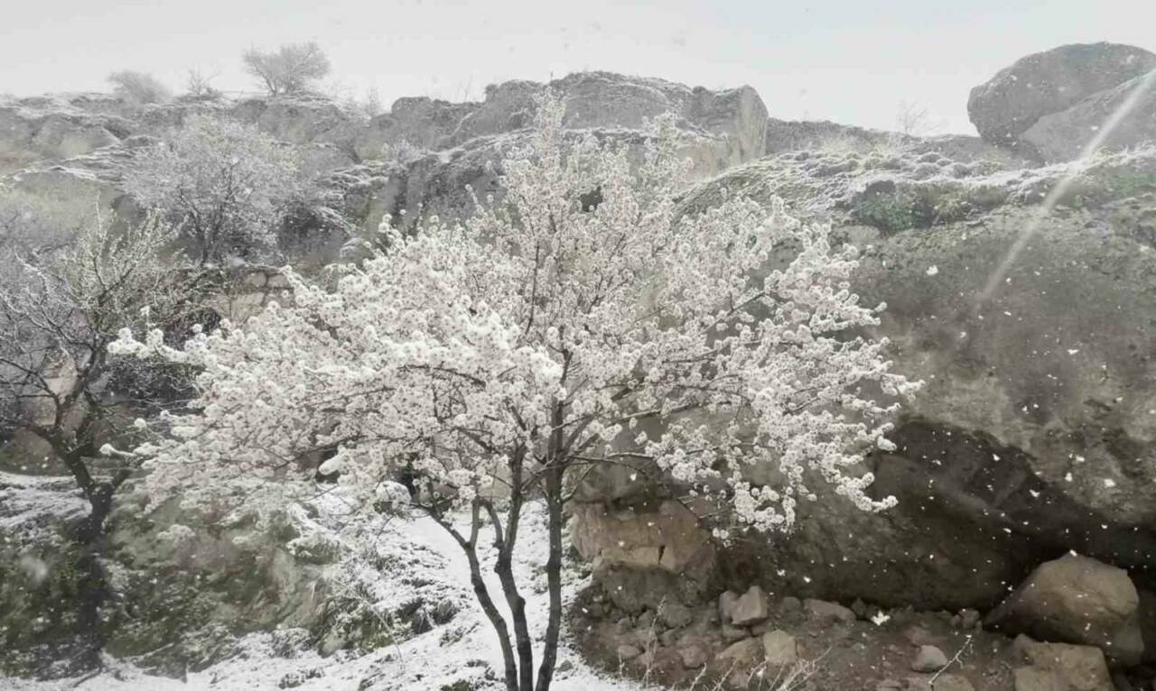 Hava sıcaklıklarının eksi 2’ye kadar düştüğü Aksaray’da günlerdir belirli aralıklarla süren kar yağışı bugün yeniden kendini gösterdi. Tarihi geçmişiyle turizm ilçesi olan Güzelyurt ilçesinde aniden başlayan kar yağışı kısa sürede ilçeyi beyaza bürüdü. Meyve ağaçlarının çiçek açtığı ilçede çiçekli dallarda beyaz örtüyle kaplandı. Nisan ayında kar yağışını şaşkınlıkla karşılayan vatandaşlar ilk kez Nisan ayında kar gördüklerini belirterek don tehlikesinden tedirgin olduklarını söyledi. İlçede kar yağışı halen devam ederken yağışların belirli aralıklarla devam edeceği bildirildi.