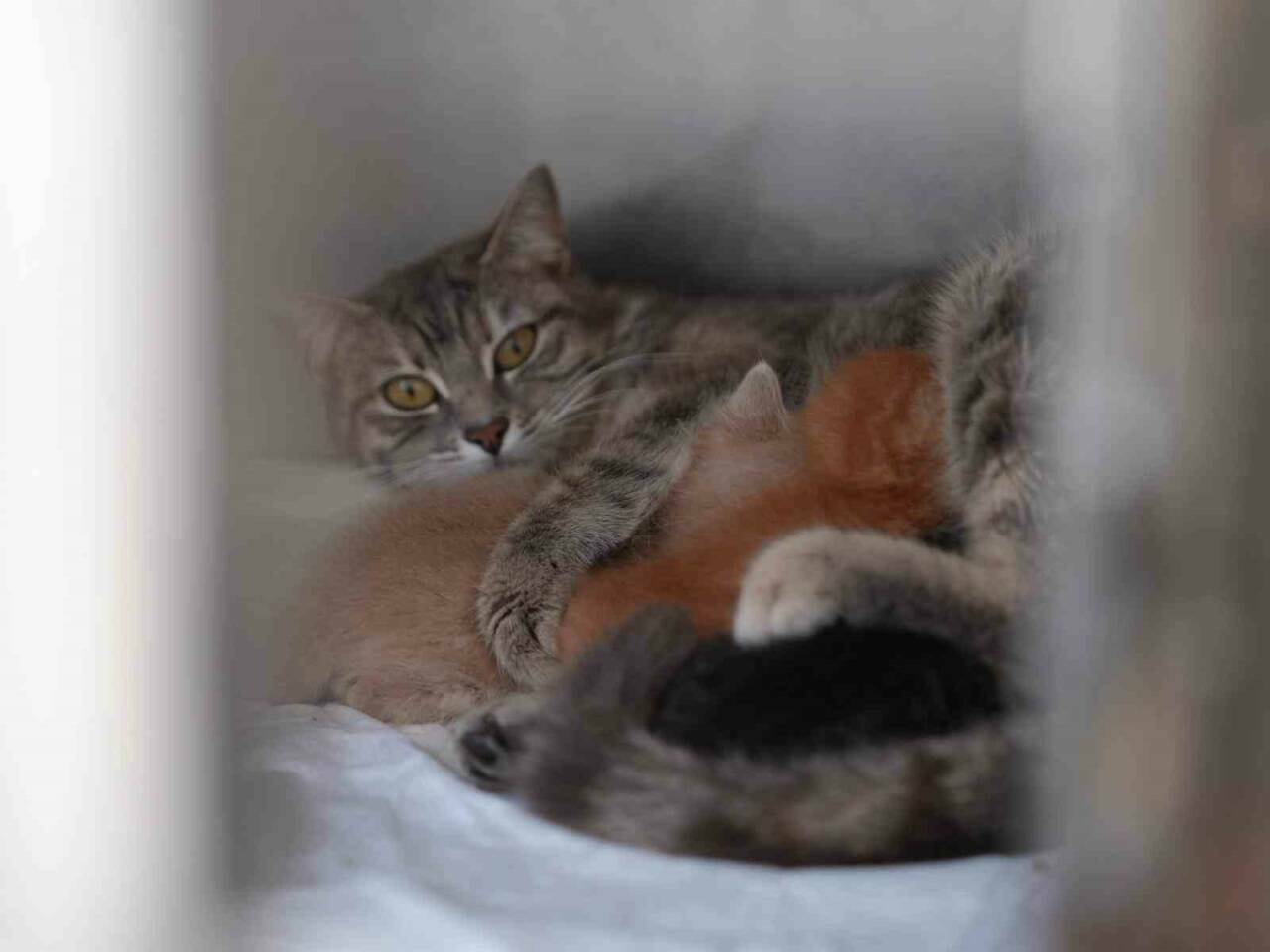 Düzce’de su kanalına düşerek boğulma tehlikesi geçiren ve itfaiye ekiplerince kurtarılan iki yavru kedi, belediyenin hayvan konukevindeki başka bir kedi tarafından sahiplenildi. Süt annenin yavru kedilere şefkati yüzlerde tebessüm oluşturdu.