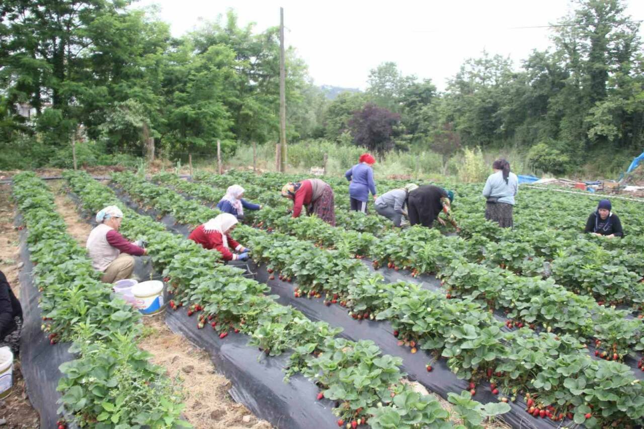 Kadınlar, mayıs ayı içerisinde başlayan ve kasım ayına kadar devam eden çilek hasadında çalışarak, aile ekonomilerine katkı sağlıyor. Saat 07.00 ile tarlalara giden kadınlar, saat 16.00’ya kadar hasat yapıyor, aynı zamanda arkadaş ortamlarında güzel vakit geçiriyorlar. Kadınlar bu işin fındık hasadına göre daha kolay olduğunu, çileğin aromasının ise güzel olduğunu belirtiyor.