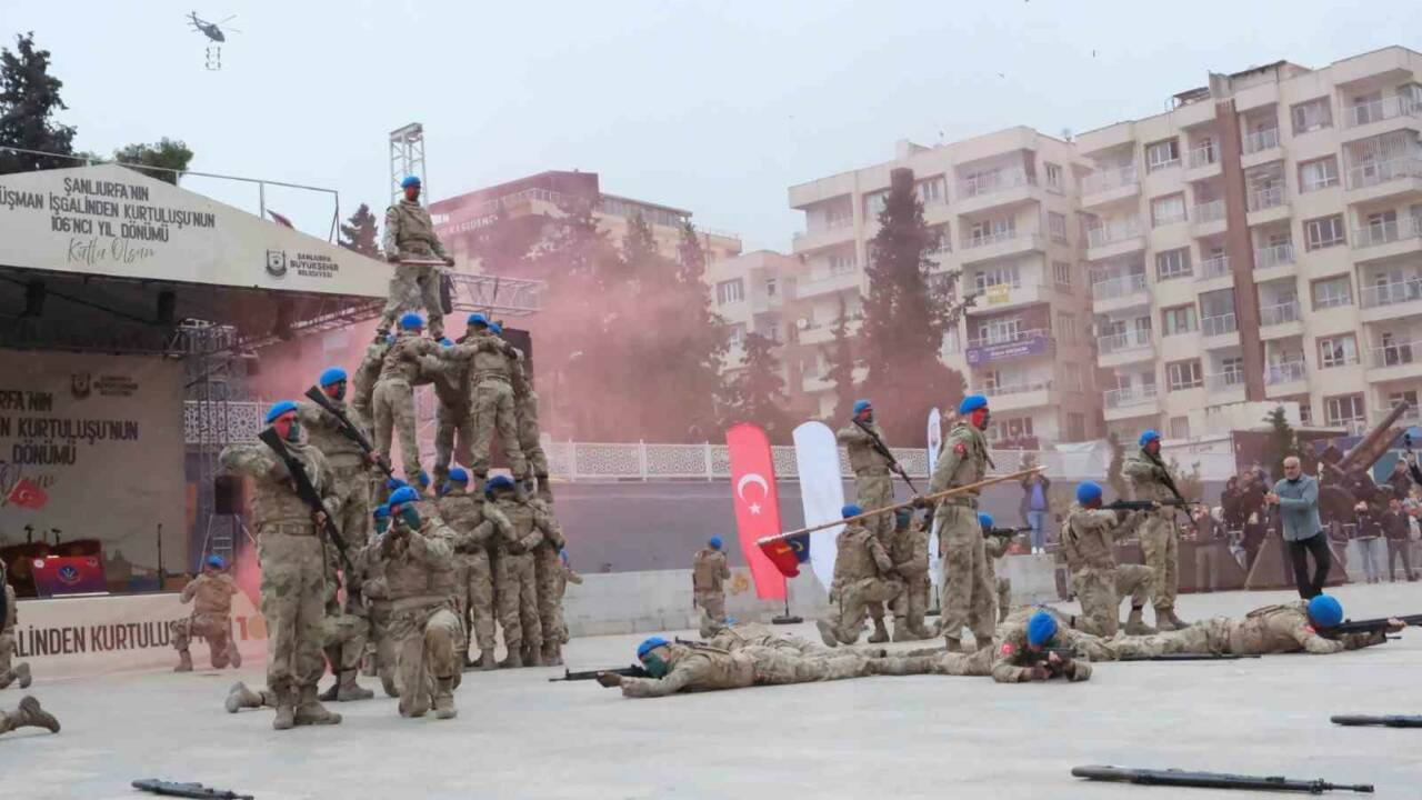 Şanlıurfa’nın düşman işgalinden kurtuluşunun 106. yıl dönümü, düzenlenen çeşitli etkinliklerle kutlandı. Mehteran marşları ve gökyüzündeki jandarma komando timinin helikopterli “Üzüm Salkımı” gösterisi renkli görüntülere sahne oldu.