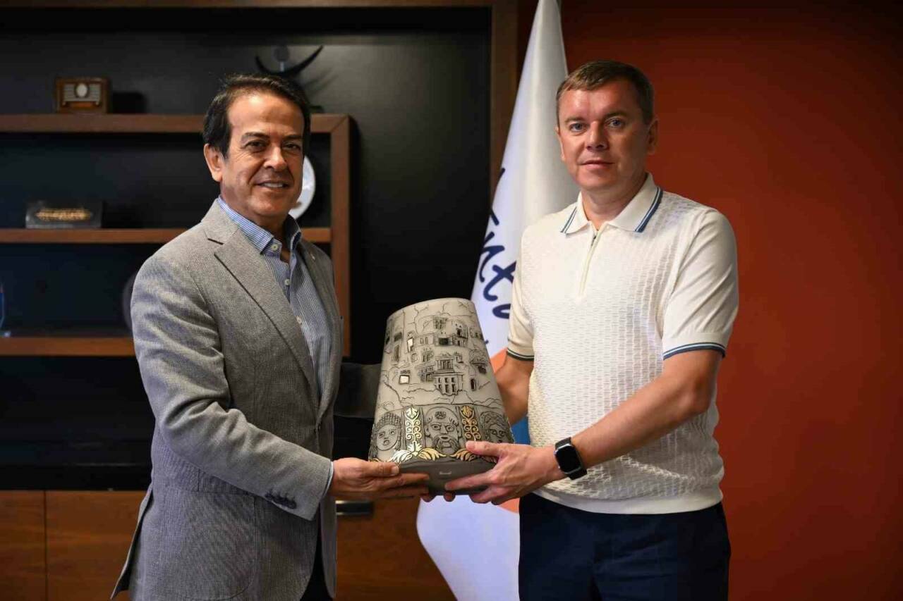 Tataristan Cumhuriyeti Başbakan Yardımcısı ve Tarım-Gıda Bakanı Marat Ahmetov, Antalya Ticaret Borsası’nı (ATB) ziyaret etti. Ziyarette, Türkiye Odalar ve Borsalar Birliği (TOBB) Yönetim Kurulu Üyesi ve ATB Yönetim Kurulu Başkanı Ali Çandır ev sahipliği yaptı. Programa ATB Meclis Başkanı Erdoğan Ekinci, Yönetim Kurulu ve Meclis Üyeleri de katıldı.