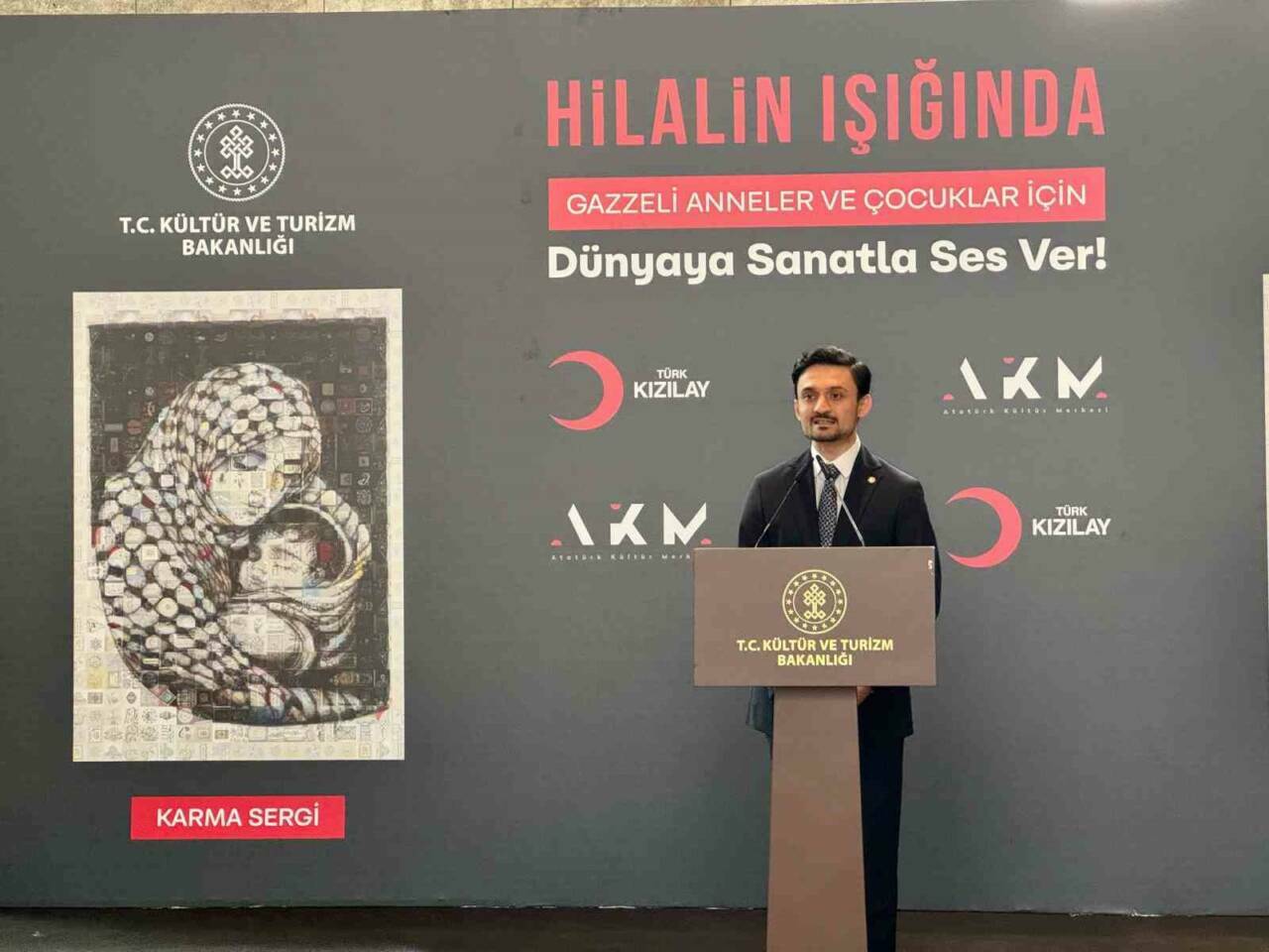 Kültür ve Turizm Bakanlığı himayesinde Türk Kızılay iş birliğiyle Taksim’de bulunan Atatürk Kültür Merkezi’nde “Hilalin Işığında” sergisi açıldı. “Gazzeli Anne ve Çocuklar için Dünyaya Ses Ver” temalı karma sanat sergisinin açılışına Türkiye Büyük Millet Meclisi (TBMM) Başkanı Numan Kurtulmuş, İstanbul Valisi Davut Gül, Türk Kızılay Genel Başkan Yardımcısı Emre Koç, Kızılay İstanbul İl Başkanı Burcu Kösem ve çok sayıda davetli katıldı.
