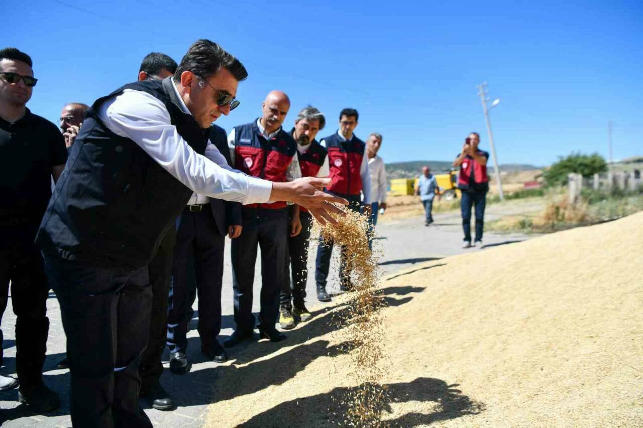 Yıllık hububat ihtiyacı 5 bin ton olan Tunceli’de 70 bin ton hububat üreterek ülke ekonomisine katkı sağlanıyor. Tunceli Valisi Şefik Aygöl de Mazgirt ilçesine bağlı Akpazar Beldesi’nde hasat etkinliğine katıldı. Makineyle hasat yapan Vali Aygöl, ardından fabrika sahipleri ve vatandaşlarla bir araya geldi. Üreticinin yanında olduklarını vurgulayan Vali Şefik Aygöl, “60 civarında mühendisimiz, bir sürü veteriner hekimimiz var. Biz üreten köye gerekirse mühendislerimizi görevlendireceğiz. Hububat ve arıcılık konusunda üreticinin doğrudan muhatabı bunlar olacak. Biz üretenin yanında olacağız. Buradan üreten ve fabrika kuran bir vatandaş var. Yeni bir fabrikaya değil üretene, başarana destek olacağız. Bu anlayışla üretene sahip çıkacağız. Belli periyotlarla gelip tarımla ilgili konuşacağız, mühendislerimiz görevlendirilecek ve muhtarın, çiftçinin muhatabı bunlar olacak şekilde bir çalışma içerisinde olacağız. Yoksa dairelerimizde 70 mühendis çalıştırmışız boş. Vatandaşlarımızın arazisi işlemiyorsa burada çalışıyoruz, teşkilatımız var dememiz lazım. Muhtarlarımız bu şehrin önderleri, ileri gelenlerisiniz. İnsanları ve bizleri yönlendirecek ihtiyaçlarınızı ortaya koyacaksınız” dedi.